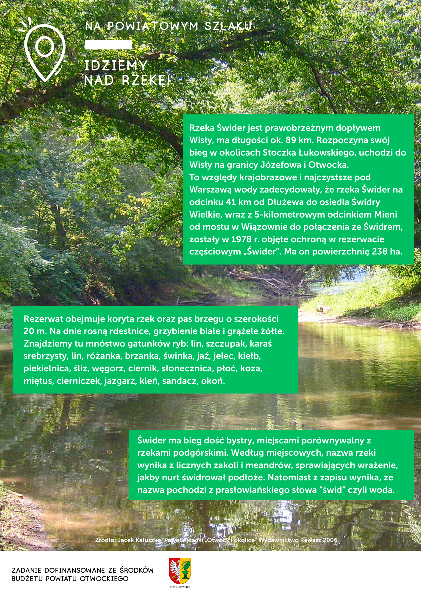Idziemy nad rzekę! – Świder to rzeka która w dużej części przepływa przez powiat otwocki. Znana jest bardziej ze spływów kajakowych, a my chcemy odkryć jej brzeg, który skrywa mnóstwo ciekawostek przyrodniczych i historycznych.